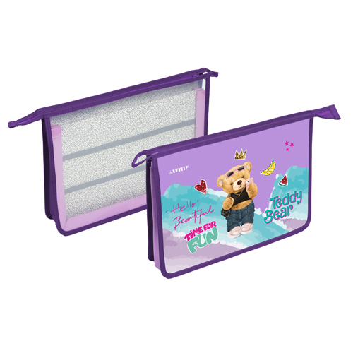 Папка для труда " deVente " А4 молния сверху Teddy Bear, с текстильным расширением 8см, пластик 500мкм