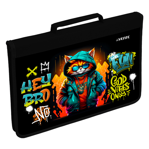 Папка для труда " deVente " А4 Hey Bro, молния вокруг, с ручками, картон с конгревным тиснением, 33,7*23*3см