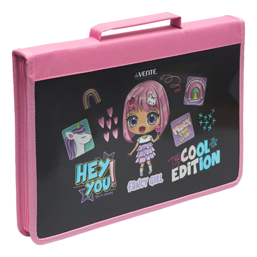 Папка для труда " deVente " А4 молния вокруг Fancy Girl, с ручкой, картон, фольга, с конгревным тиснением