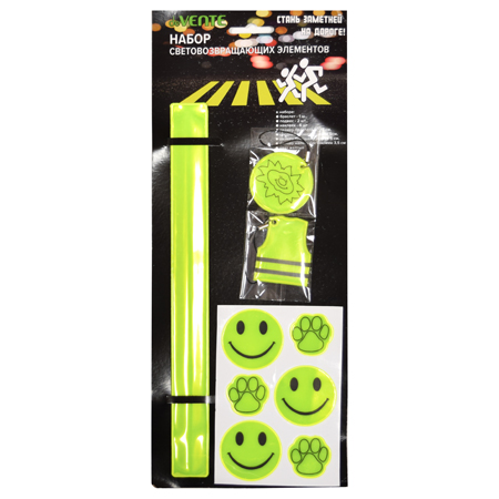 Набор фликеров " deVente " Смайлики желтый, флуоресцентный, в наборе: браслет 300*30мм, 2 подвеса, 6 наклеек, пакет, европодвес