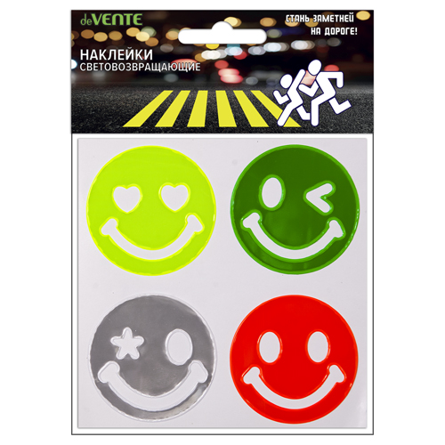 Набор фликеров " deVente " наклейки Смайлики 4шт 50*50мм, пакет, европодвес