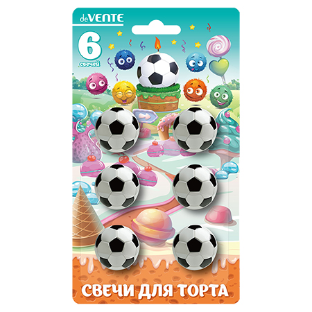 Набор свечей для торта " deVente " Football 6шт, картонный блистер, европодвес