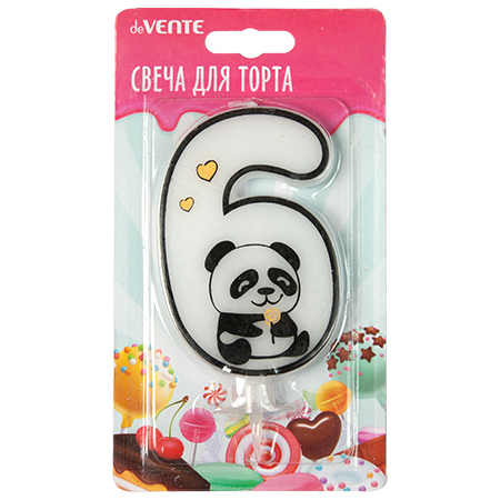 Свеча для торта цифра " deVente " Панда 6, белая, 9,1*6,6*1см, картонный блистер, европодвес
