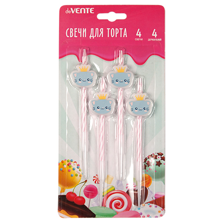 Набор свечей для торта " deVente " Котик 4шт, картонный блистер, европодвес