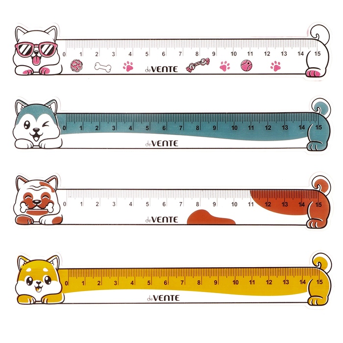 Линейка 15 см, deVENTE, фигурная DOG, микс - 4 вида, гибкая