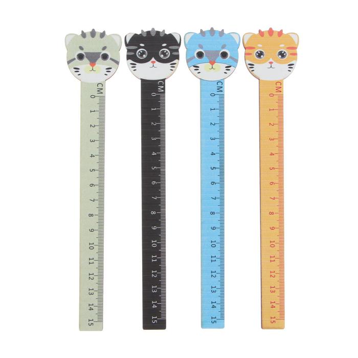 Линейка деревянная 15 см, deVENTE фигурная Kittens (штрих-код), МИКС х 4 цвета, картонная коробка