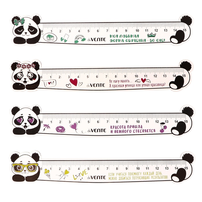 Линейка 15 см, deVENTE, фигурная PANDA, микс - 4 вида, гибкая