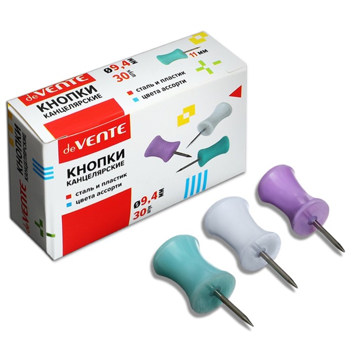 Кнопки силовые цветные, 30 штук, deVENTE d-9,4мм, картонная коробка