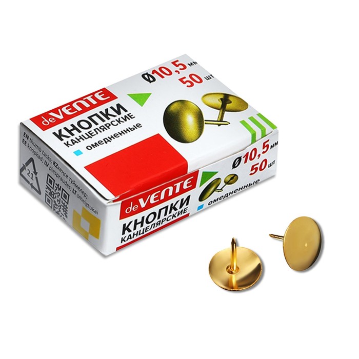 Кнопки канцелярские омедненные 10,5 мм, 50 штук, deVENTE, в картонной коробке