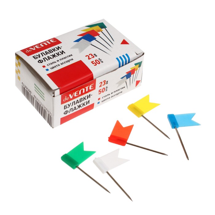 Кнопки силовые "Флажки", 50 штук, deVENTE, в картонной коробке