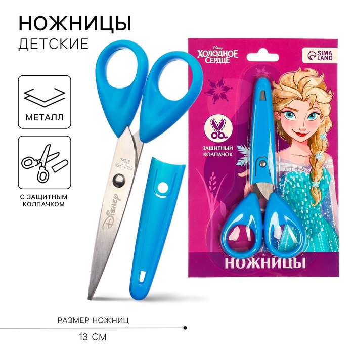 Ножницы детские 13 см, с защитным колпачком, Холодное сердце