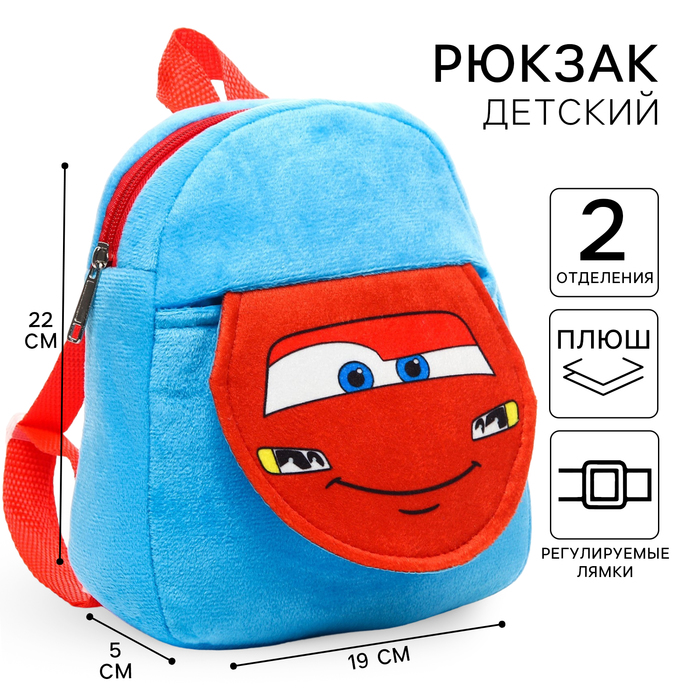 Рюкзак плюшевый на молнии, с карманом, 19 х 22 см "Молния Маккуин", Тачки