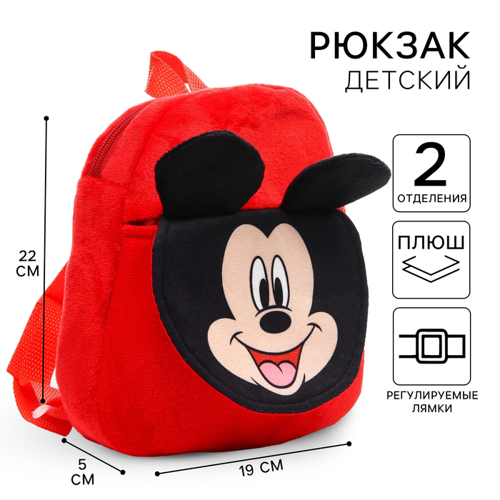 Рюкзак детский дошкольный плюшевый, 18,5 см х 5 см х 22 см "Мышонок", Микки Маус
