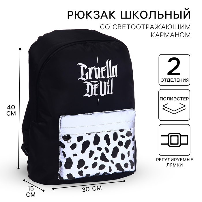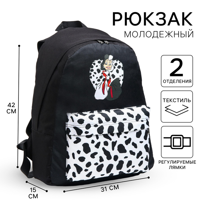 Рюкзак молодежный, отд на молнии, н/карман, черный, 42 х 31 х 15 см "Круэлла", Злодейки