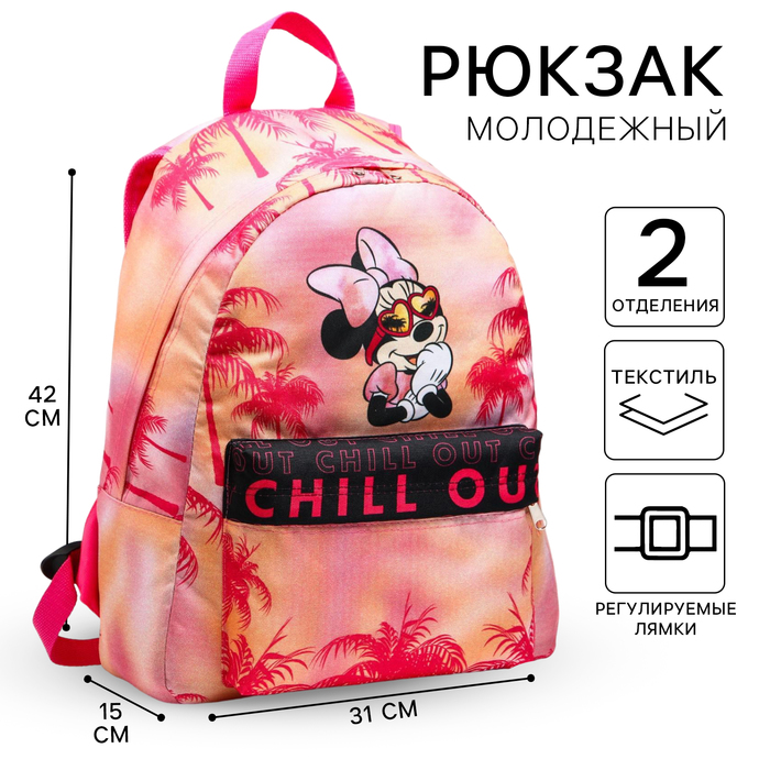 Рюкзак молодежный, отд на молнии, н/карман, розовый, 33 см х 13 см х 37 см "Мышка", Минни Маус