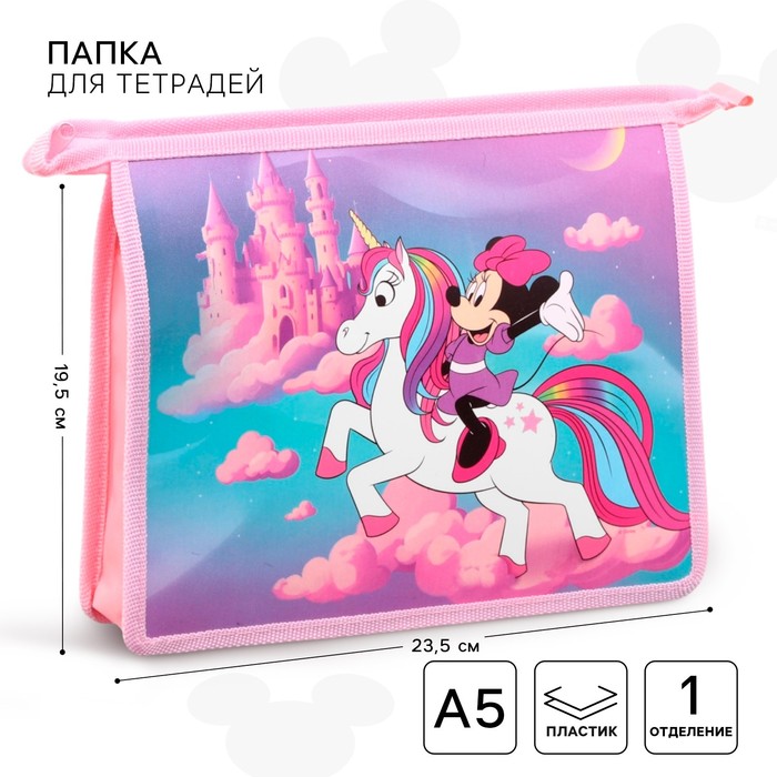 Папка для тетрадей А4, на молнии, пластик, Минни Маус и Единорог