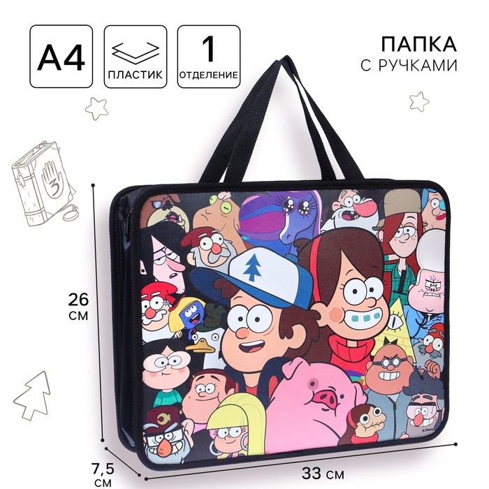 Папка пластиковая А4, на молнии, Гравити Фолз