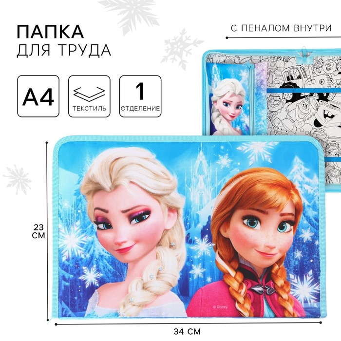 Папка для труда А4 с пеналом, на молнии, текстиль, Холодное сердце