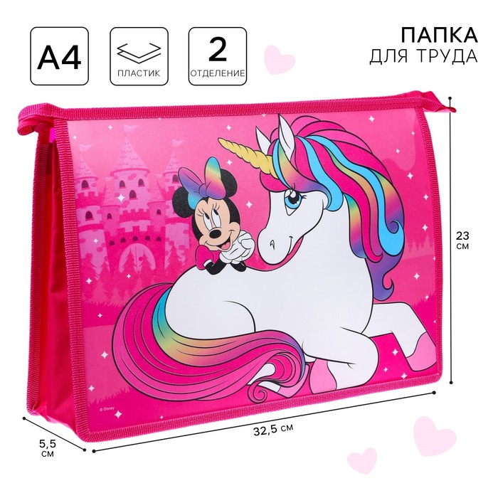 Папка для труда А4 с пеналом, на молнии, текстиль, Минни Маус и единорог