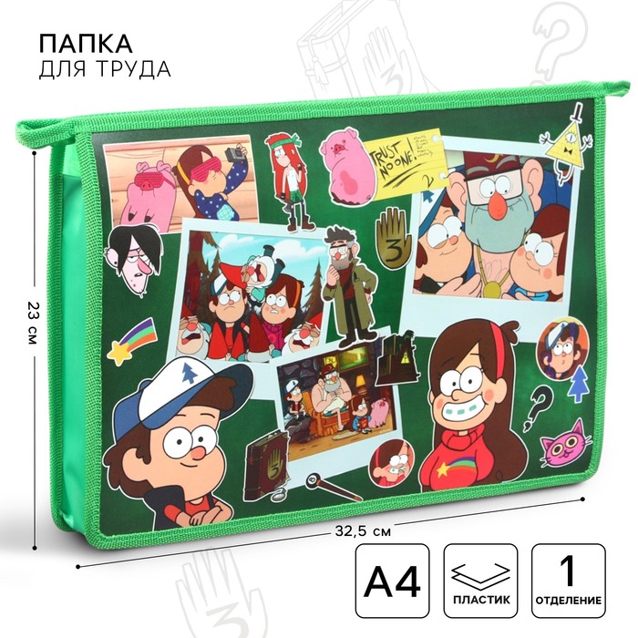 Папка для труда А4 с пеналом, на молнии, текстиль, Гравити Фолз