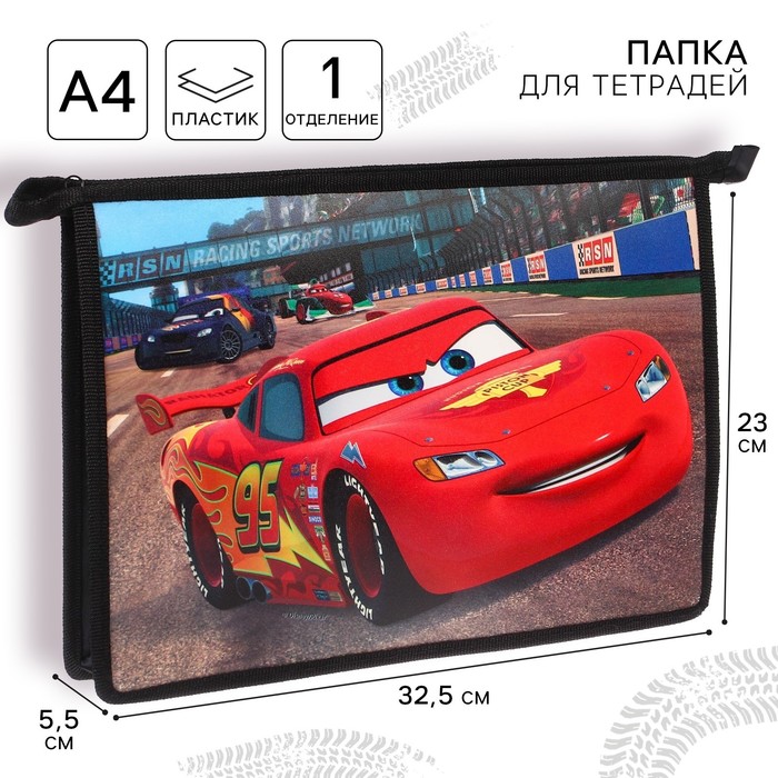 Папка для тетрадей А4, на молнии, пластик, Тачки