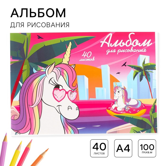 Альбом для рисования А4, 40 листов 100 г/м², на склейке, Минни Маус и единорог