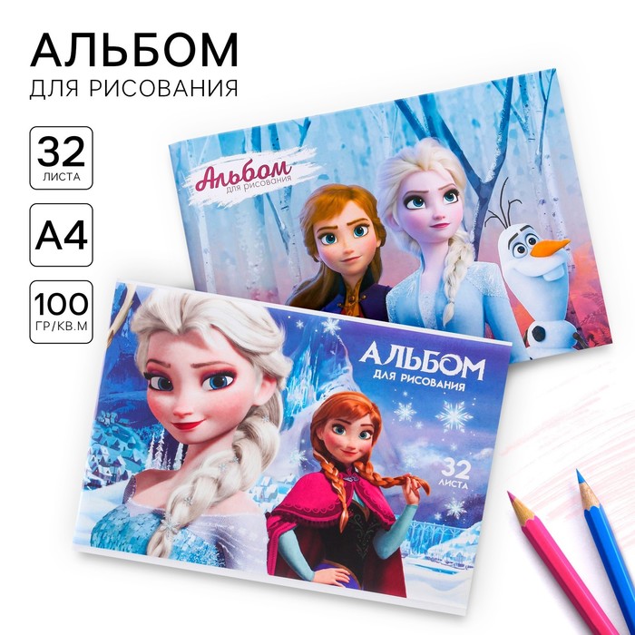 Альбом для рисования А4, 32 листа 100 г/м², на скрепке, Холодное сердце