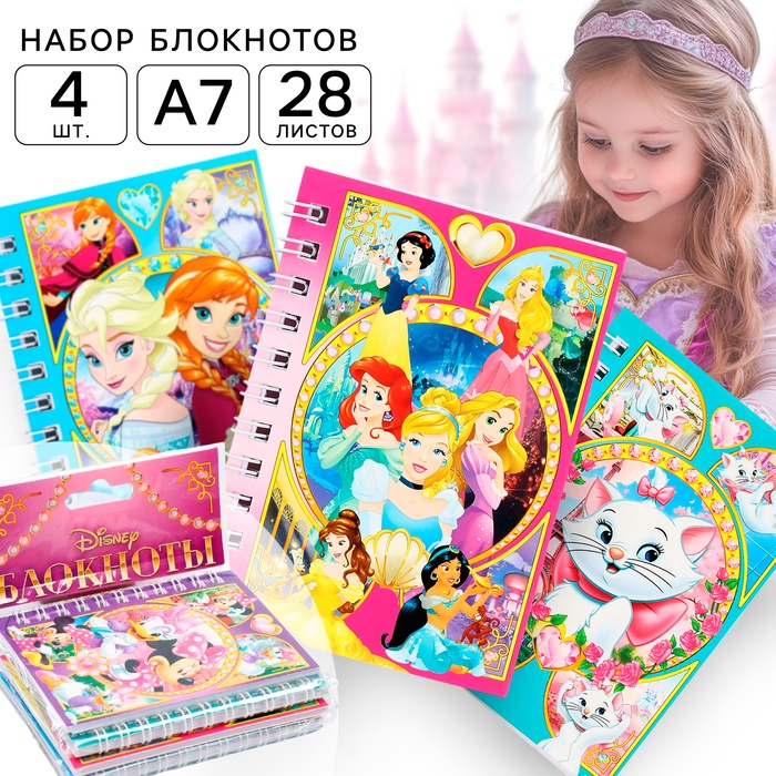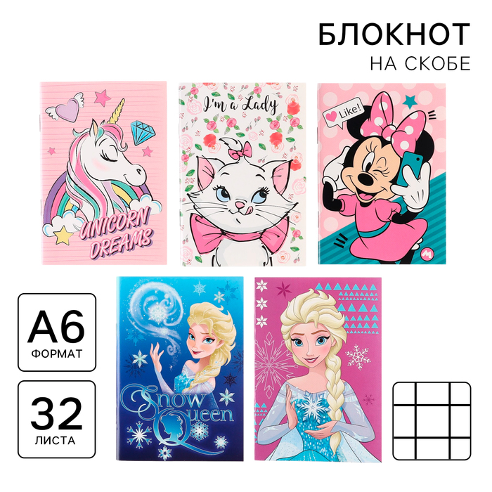 Блокнот А7, на скрепке, 16 листов, в клетку, Минни Маус и Единорог