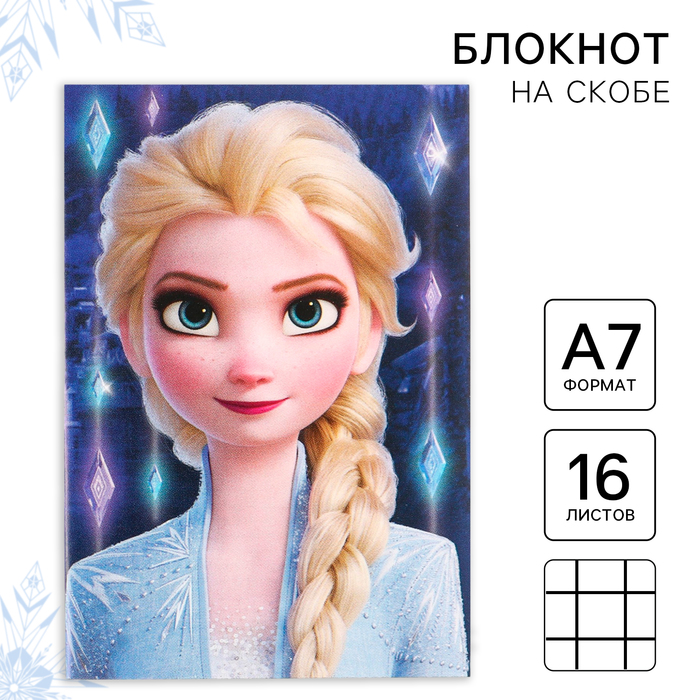 Блокнот А7, на скрепке, 16 листов, в клетку, Холодное сердце