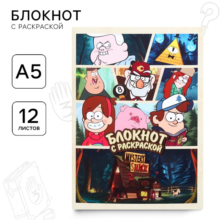 Блокнот раскраска 12 листов, 13х18 см, Гравити Фолз