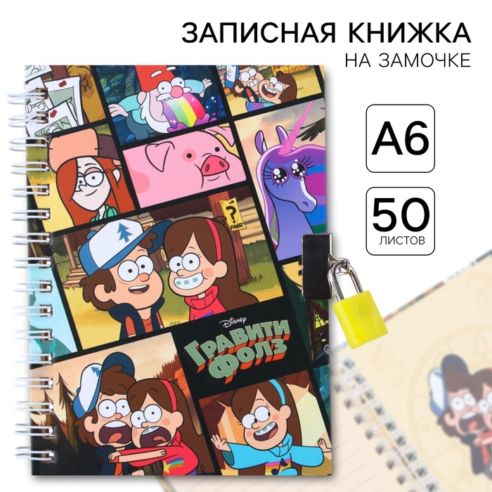 Записная книжка на замочке А6, 50 листов, Гравити Фолз