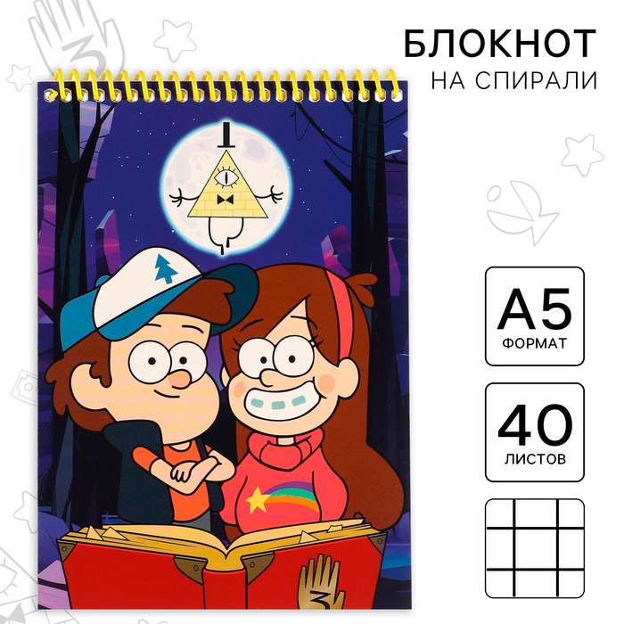 Блокнот А5, на гребне, 40 листов, Гравити Фолз