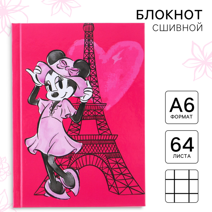 Блокнот А6, 64 листа, в твёрдой обложке, Минни Маус