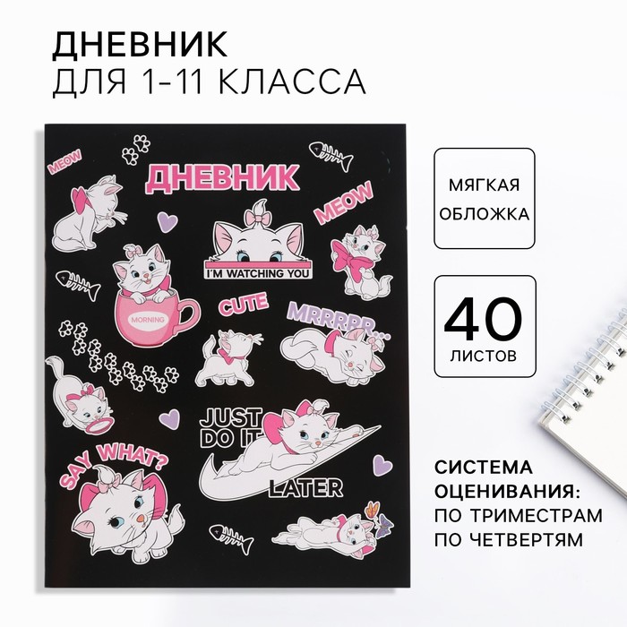 Дневник для 1-11 класса, в мягкой обложке, 48 л., Кошечка Мари