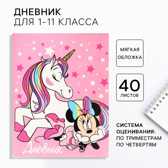 Дневник школьный, 1-11 класс в мягкой обложке, 48 л «Минни и единорог», Минни Маус
