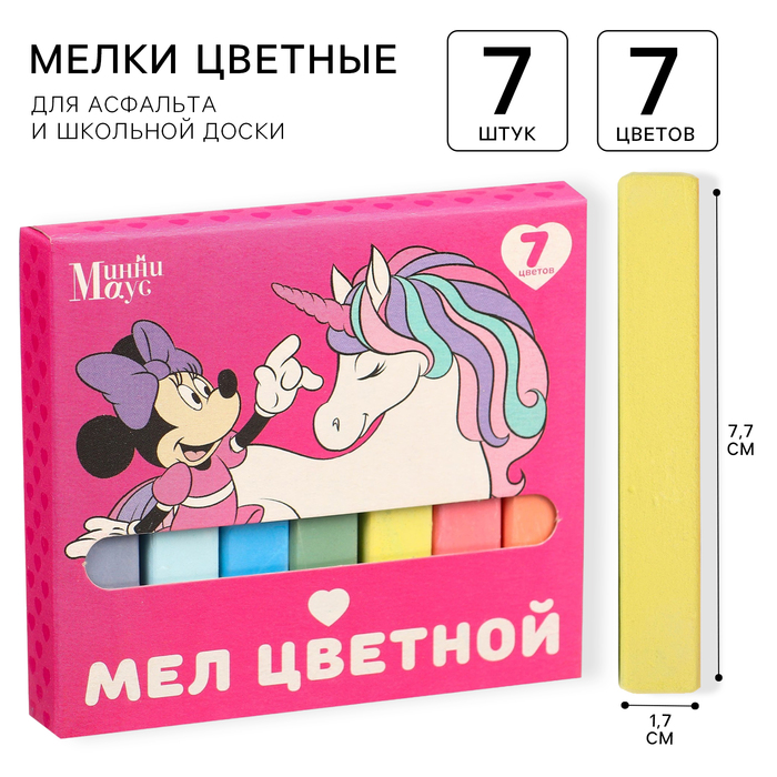 Мелки цветные школьные 7шт "Единорог" Минни Маус и Единорог