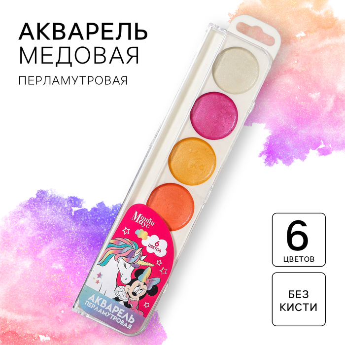 Акварель медовая «Минни» Минни Маус, 6 цветов, в картонной коробке, без кисти