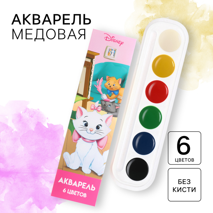 Акварель медовая «Кошечка Мари», 6 цветов, в картонной коробке, без кисти