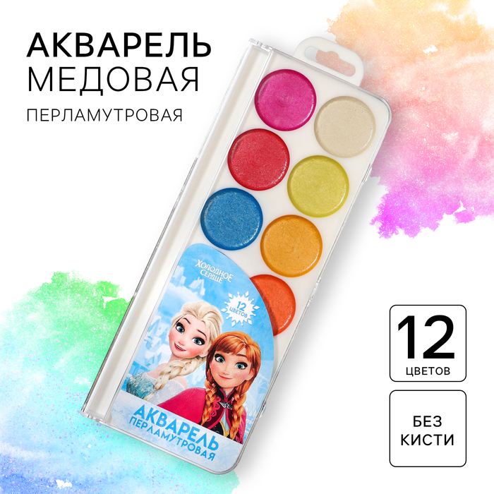 Акварель медовая «Холодное сердце», 12 цветов, в картонной коробке, без кисти