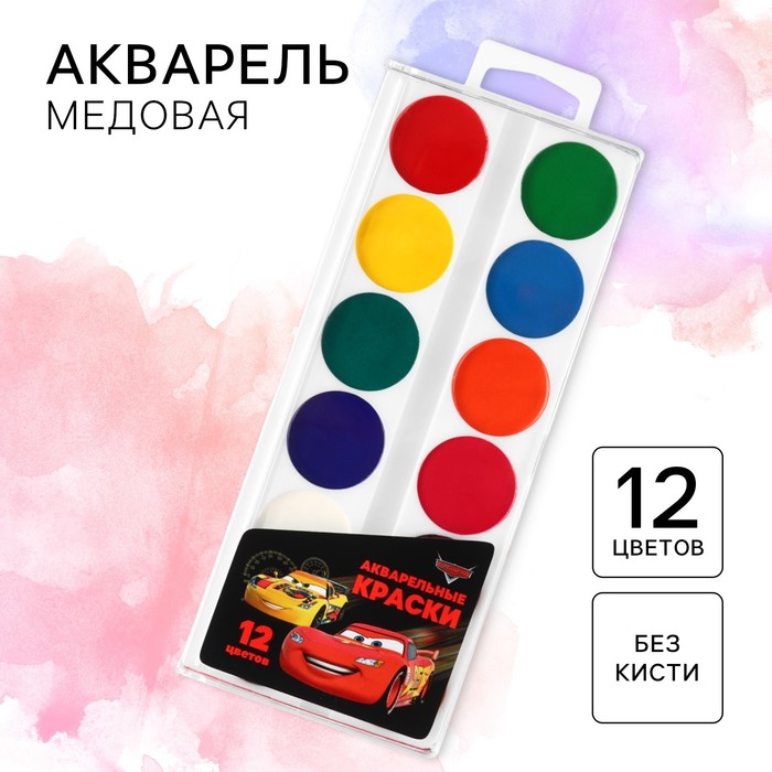 Акварель медовая «Тачки», 12 цветов, в картонной коробке, без кисти