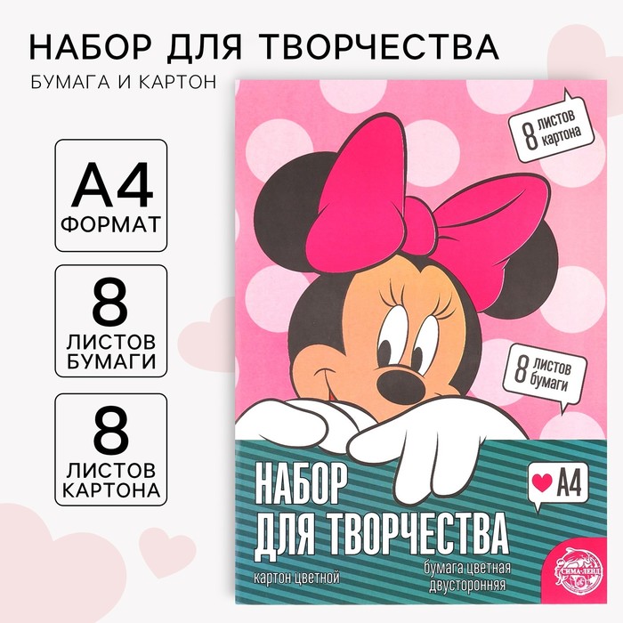 Набор «Минни» А4: А4: 10 л. цв. одност. мел. картона и 16 л. цв. двуст. Бумаги, Минни Маус