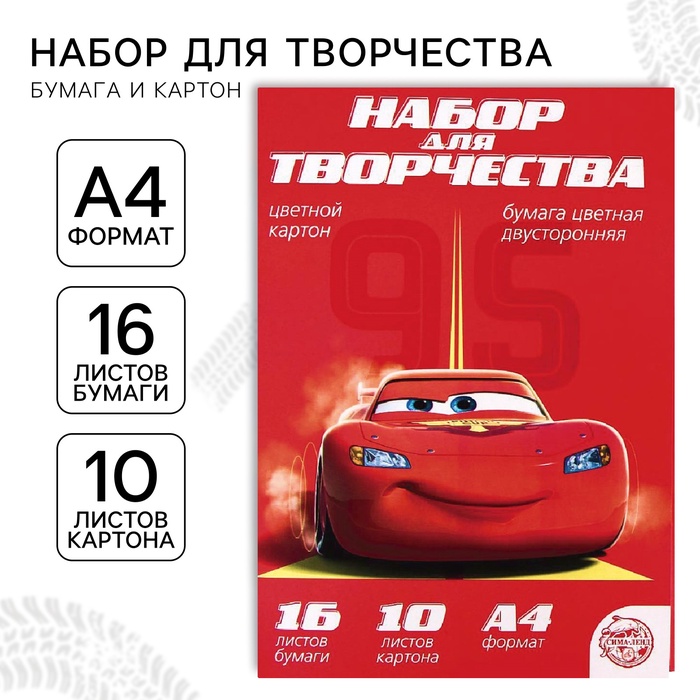 Набор "Тачки" А4: 10л цветного одностороннего картона + 16л цветной двусторонней бумаги