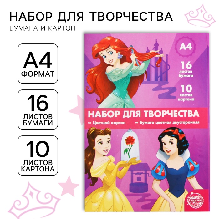 Набор "Принцессы" А4: 10л цветного одностороннего картона + 16л цветной двусторонней бумаги