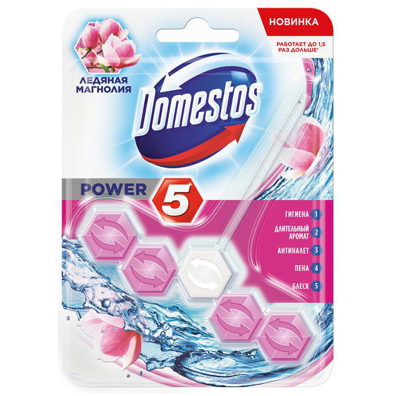 Подвесной блок для унитаза Domestos "Power 5. Ледяная Магнолия", 55г