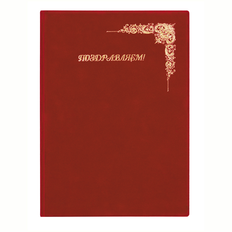 Папка адресная ПВХ под бархат "ПОЗДРАВЛЯЕМ!", формат А4, бордовая, индивидуальная упаковка, "ДПС", 2032.П-303