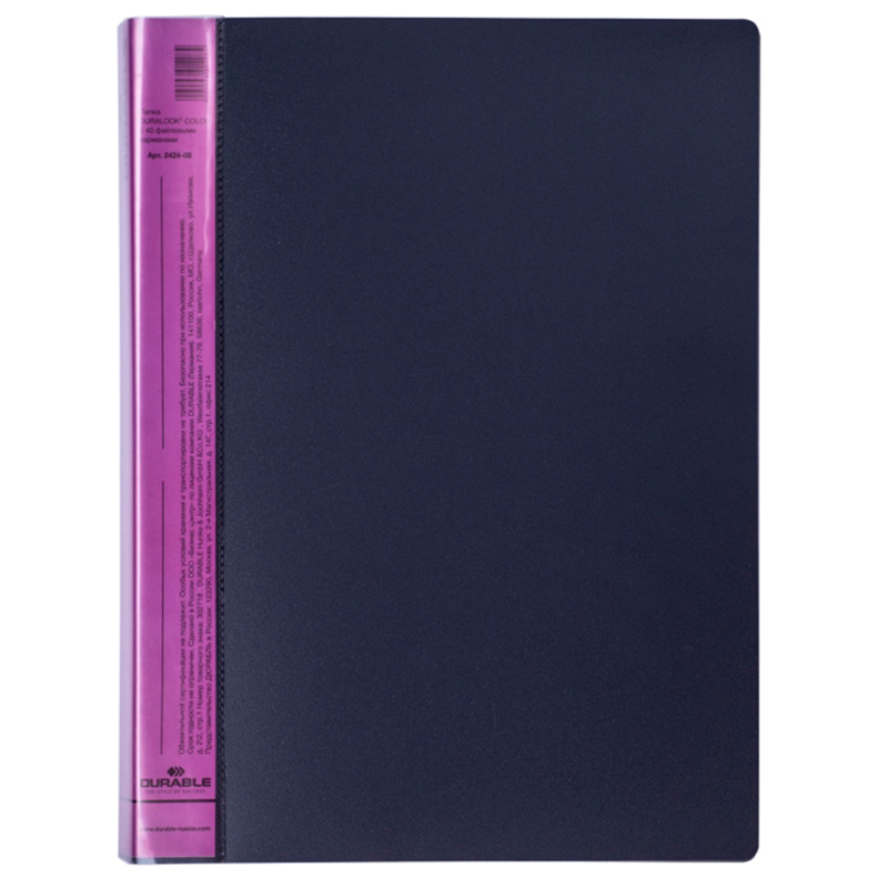 Папка с 40 вкладышами Durable "DuraLook Color", 25мм, 700мкм, антрацит-розовая