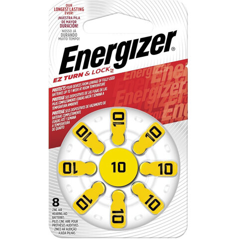 Батарейки для слуховых аппаратов КОМПЛЕКТ 8 шт., ENERGIZER Zinc Air 10, блистер, E301431701