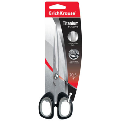 Ножницы " Erich Krause " Titanium 20,5см пластиковые ручки с резиновыми вставками, черные, картонная упаковка, европодвес