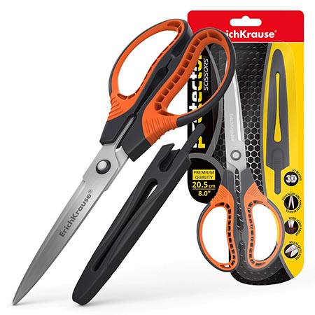 Ножницы " Erich Krause " Protector 20,5см металлические, с чехлом, с резиновыми вставками, серо-оранжевые, картонная упаковка, европодвес