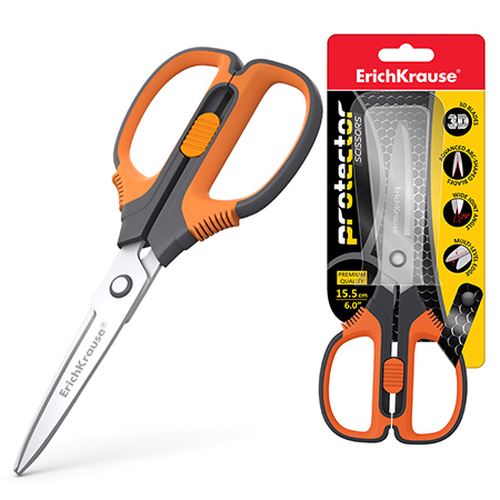 Ножницы " Erich Krause " Protector Lock 15,5см металлические, с фиксатором, с резиновыми вставками, серо-оранжевые, картонная упаковка, европодвес